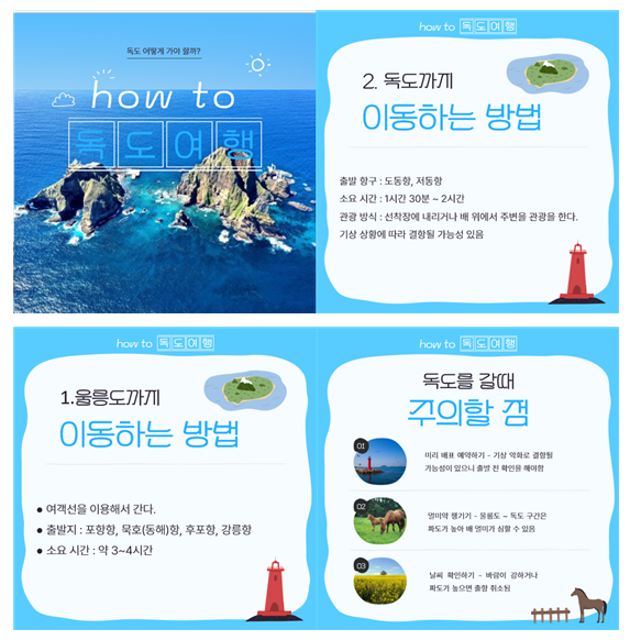 독도와 관련된 내용으로 카드뉴스를 만들어 발표하기